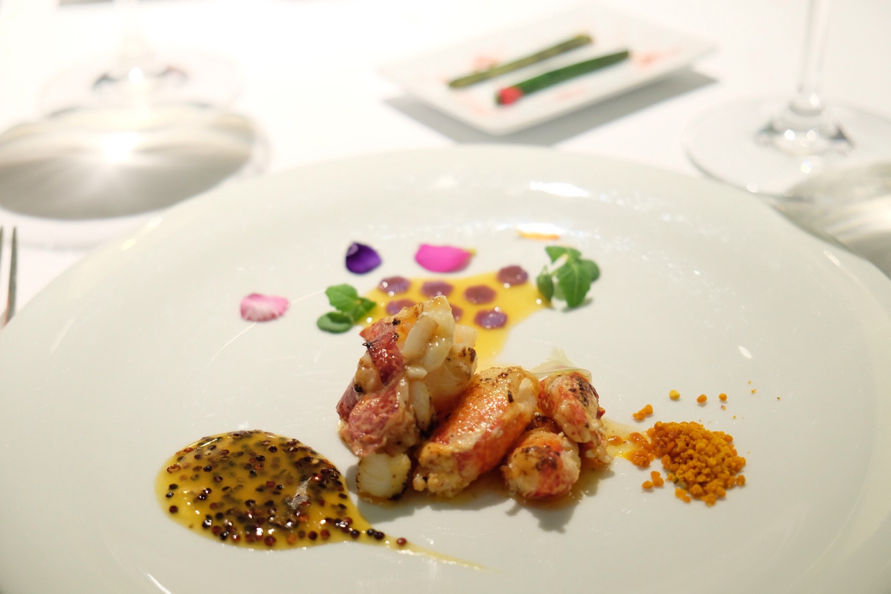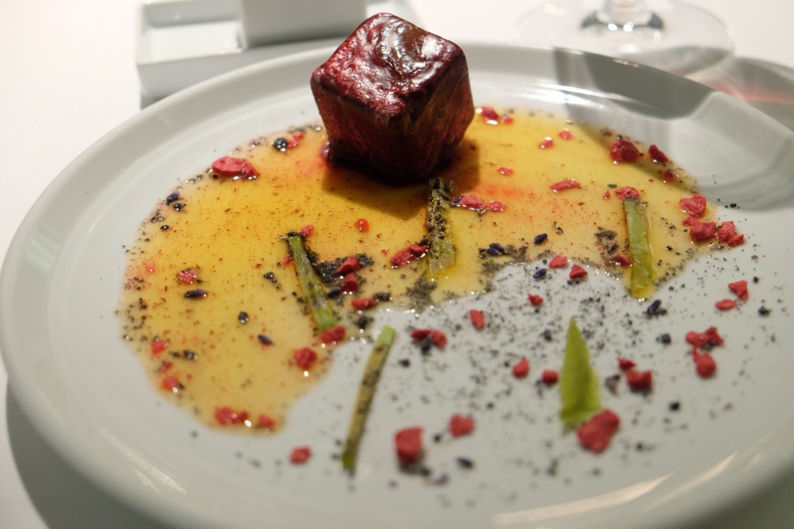 Danach Hummer mit blauen Potato und rauchigen Zucchetti (siehe ganz oben). Dazu auch Pollen, die mich an meine Kindheit erinnerten, als wir mit meinem Vater zum Bienenstock gingen und auch solche Pollen essen durften.