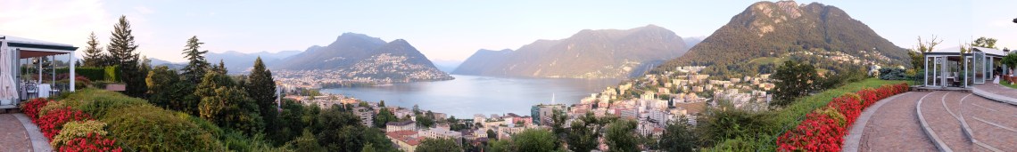 Ganz oben über Paradiso (Lugano) ist das Principe Leopoldo, das vom Guide Michelin empfohlen wird. Vom Garten hat man grandiose Sicht auf den Luganersee und ein Pianospieler spielt bereits.