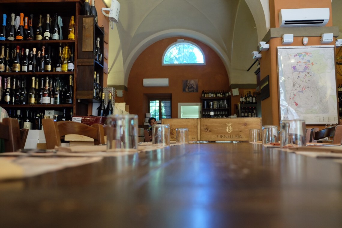 Der Winzer Fabrizio vom Weingut „Le Noveline“ gab uns den Tipp, die Enoteca Tognoni zum Mittagessen zu besuchen. Dort waren nebst Fabrizios Weinen auch viele andere aus der Region vertreten, ganze Regale von der Decke bis zum Boden waren beladen.