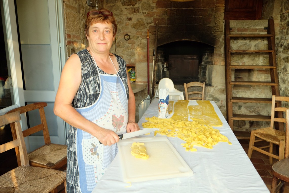 Elf Erwachsene und sieben Kinder zu verköstigen, gibt zu tun. Das merkten wir, als wir die Villa Podere Sequerciani in Tatti mieteten. Wir fragten den Vermieter, ob wir eine Köchin engagieren können und nach dem ersten Essen (Primi: Lasagne, Secondi: Kalbsplätzli mit Spinat, Dolci: Feigentarte, 90 Euro inklusive Material) kamen wir natürlich auf den Geschmack.