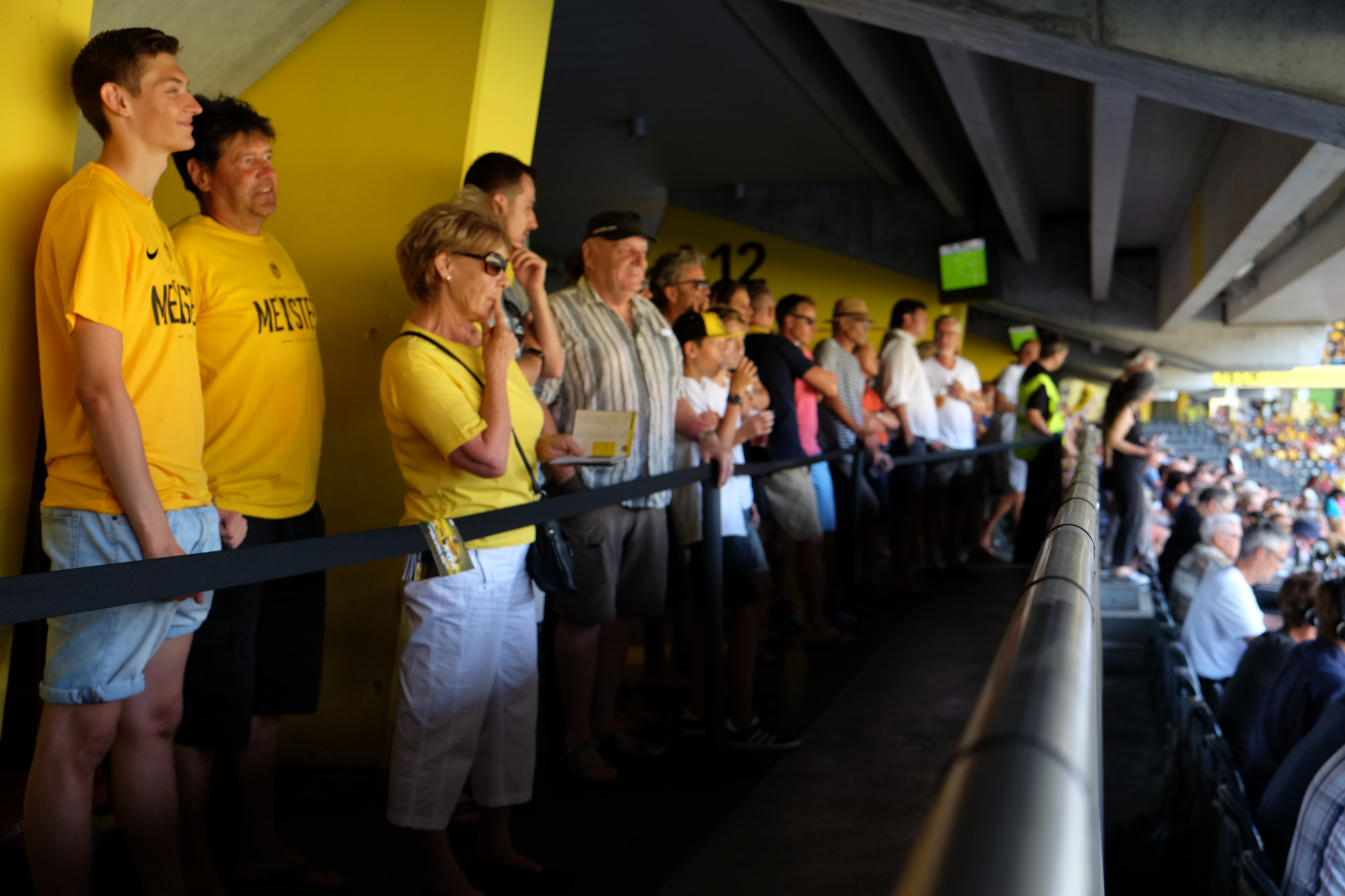 Von ihrem Platz aus ist die Fankurve zwar etwas weit weg, aber dennoch ist sie froh, dass es die Ultras gebe. «Ohne sie wäre es mir zu ruhig.» Gerade bei ihr im Sektor A habe es etwas gehobene Leute, die nicht gerade lauthals mitsingen würden. Heidi Schnyder hat hingegen keine Hemmungen: «Ich singe laut, mit voller Kraft und kreuzfalsch, aber das ist mir egal.»