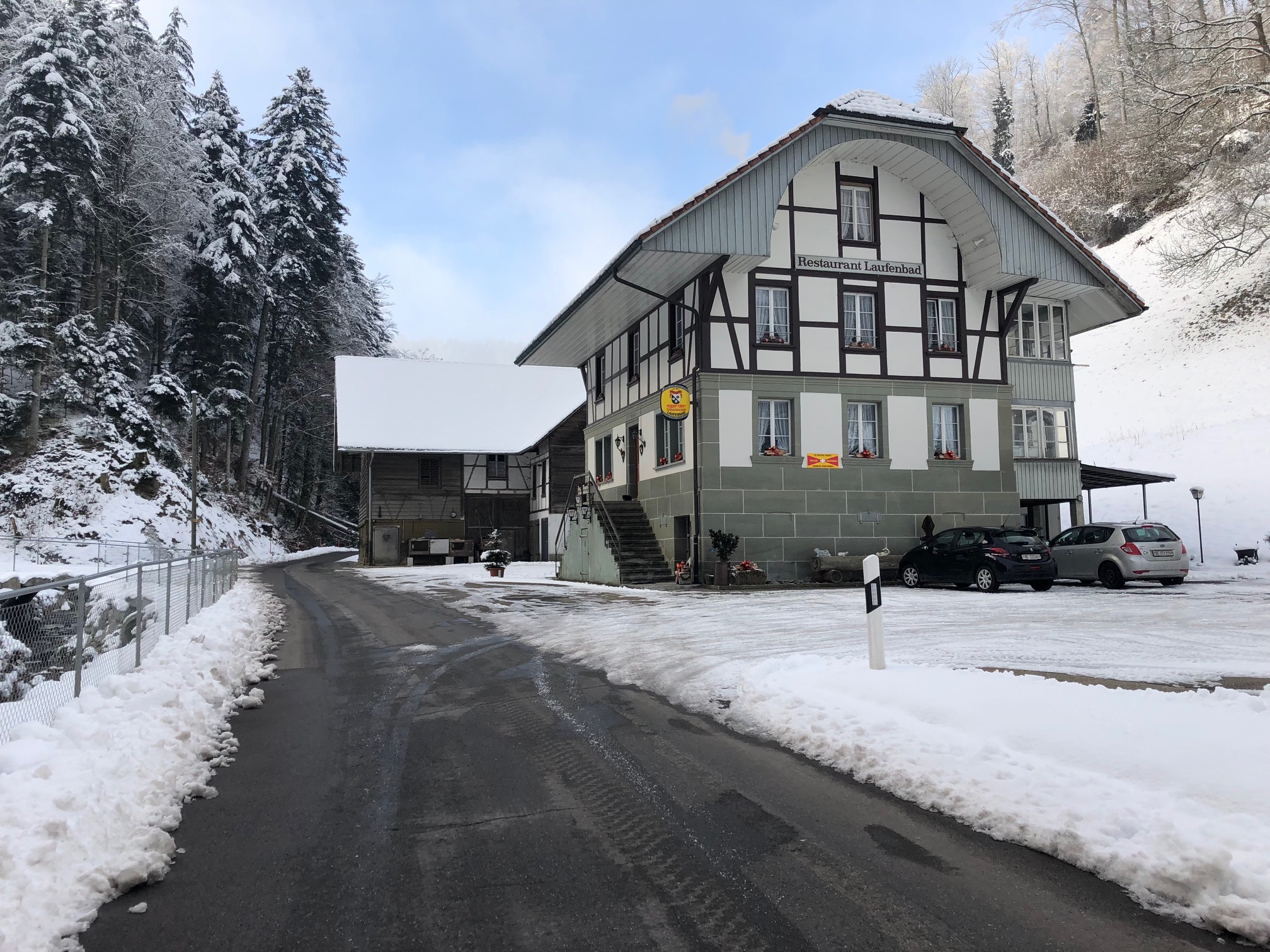 Drinnen im Restaurant Laufenbad treffen zwei Welten aufeinander, oder zumindest zwei Kontinente: Die Schweizer Wirtsleute, die den Gasthof abgeben, und die ausländischen Food-Trucker, die ihn übernehmen. Alle vier stehen unbeholfen in der Gaststube herum. Sie sprechen Hochdeutsch, schütteln Hände, der US-Amerikaner Sam Sager bestellt Kaffee auf Englisch. Im Schlepptau hat er den Venezolaner Anibal Gamez. Mit ihrer Ankunft sind die Tage eines regulären Gastbetriebes gezählt, da Gamez und Sager im Frühling mit ihren Food-Trucks wieder in Bern unterwegs sein werden. Hierher verlegen sie bloss ihre Produktionsküchen.
