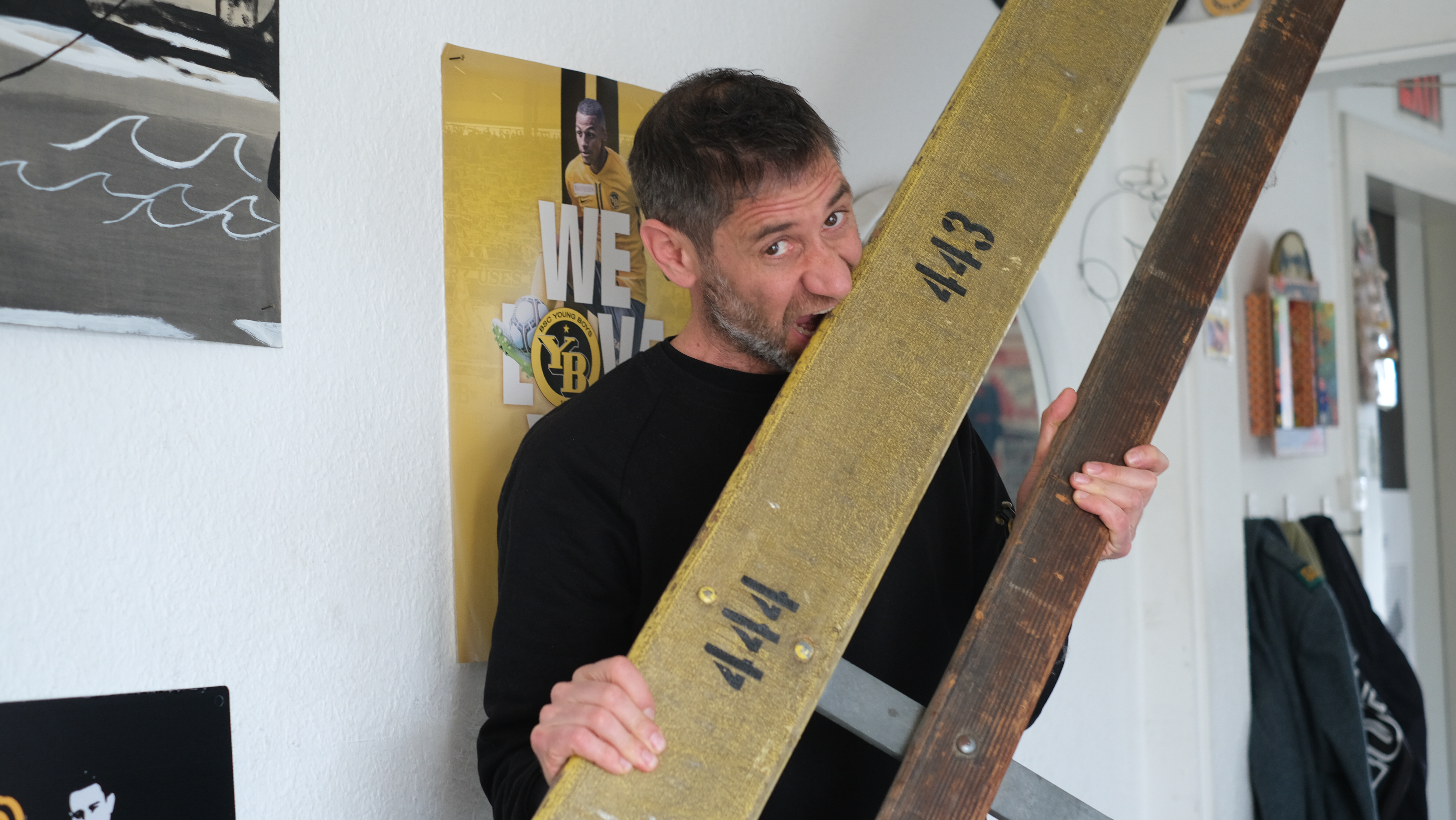 Der amtierende Meister beeinflusst sein Leben bis in die letzte Sekunde. Auch sein Trinkverhalten, denn seit fast drei Jahren trinkt er keinen Alkohol mehr. Während der 20 Jahre im Musikbusiness, von denen die vielen Artist-Bändel an der Wand zeugen, habe er nach den Konzerten volllaufen lassen. «Das letzte Mal, als ich mich betrank, war mit Weisswein am Xamax-Spiel. Als die Kultband Mani Porno auf dem Rückweg im Extrazug spielte, fing der Filmriss schon an. Das Ganze endete fatal.»