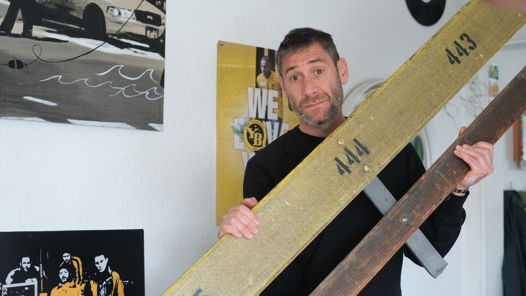 Wenn die ersten Töne des Einlaufsongs von Wurzel 5 ertönen, müssen alle aufstehen. Alle, die in der gleichen Reihe wie Baldy Minder sitzen, weil er immer knapp vor dem Spiel im Wankdorf ankommt. «Ich freue mich jedes Mal, den Song zu hören und die Choreo der Kurve zu sehen», sagt der 45-Jährige. Aus dem Lautsprecher dröhnen E-Gitarren-Riffs, der Wurzel-5-Frontmann Serej stimmt mit «Mini Stadt, sit Jahr u Tag» sanft ein.