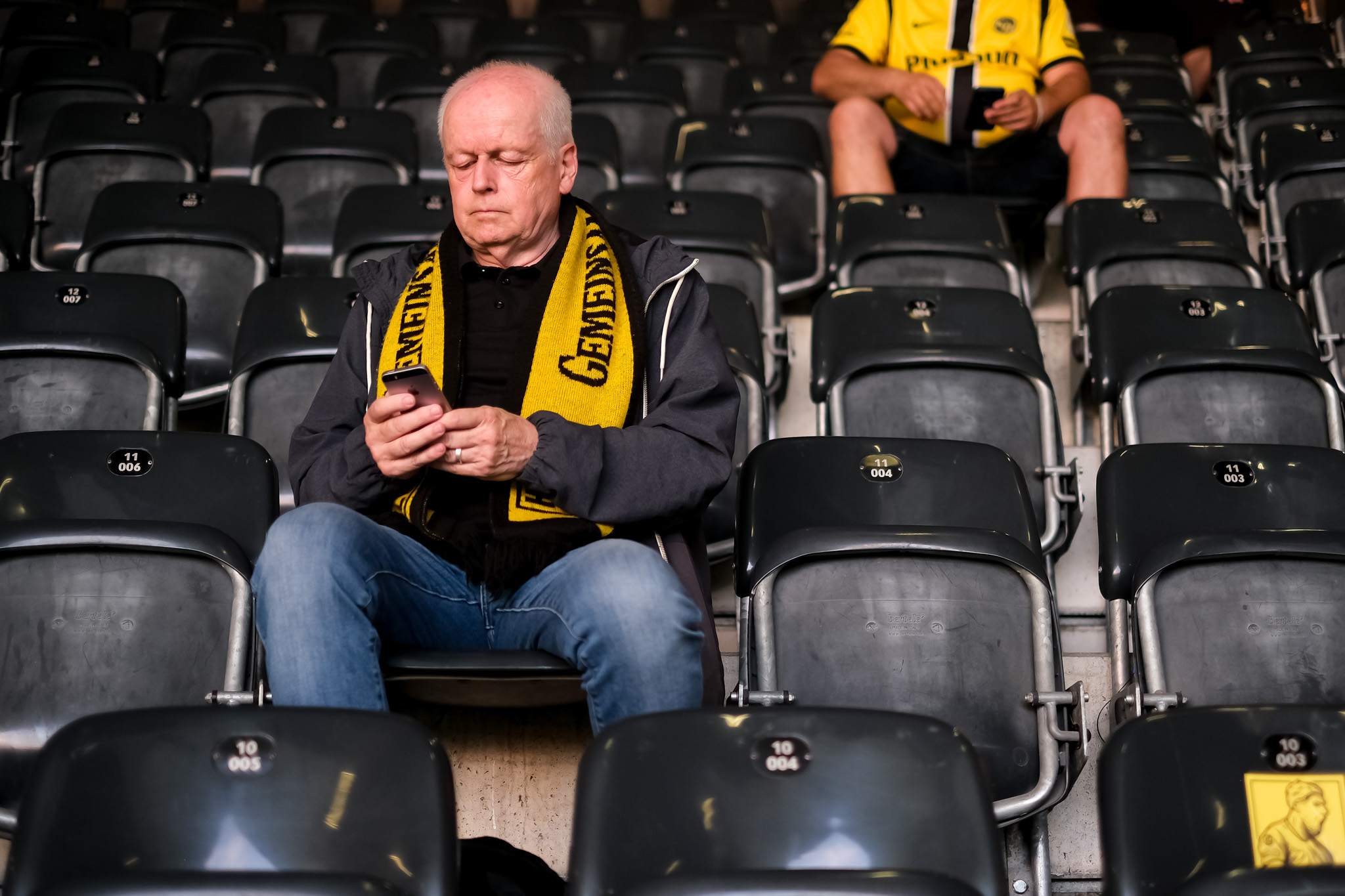 Um seinen Hals baumelt der Schal des Fanlokals “Halbzeit”. Urs Frieden passiert die historische Uhr vor dem Wankdorfstadion exakt eine Stunde vor Anpfiff, nichts wie rein. Denn er muss noch die Aufstellung studieren. Sektor D1, Reihe 11, Platz 5 gehört ihm. Eigentlich gehört ihm noch der ganze Sektor, denn er ist komplett alleine hier. “Einmal habe ich mich in die falsche Reihe gesetzt. Weil sich die Leute an mir orientieren, sassen dann ein Dutzend Leute am falschen Platz.”