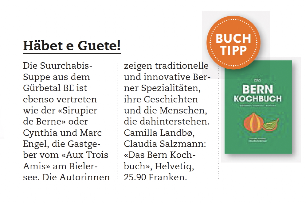 Das Bern Kochbuch ist da. Folgendes schreiben landauf, landab Magazine und Medien über unser neues Kochbuch.